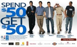 3. Receive a $50 store credit good for any Men’s Apparel purchase at Sears. (Most likely by mail.)