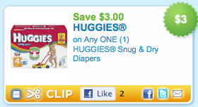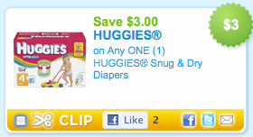 Yippee! The $3/1 Huggies coupon is back. Make sure to hit the back button, so you can’t print two. And don’t delay – never know how long it is going to stay around.